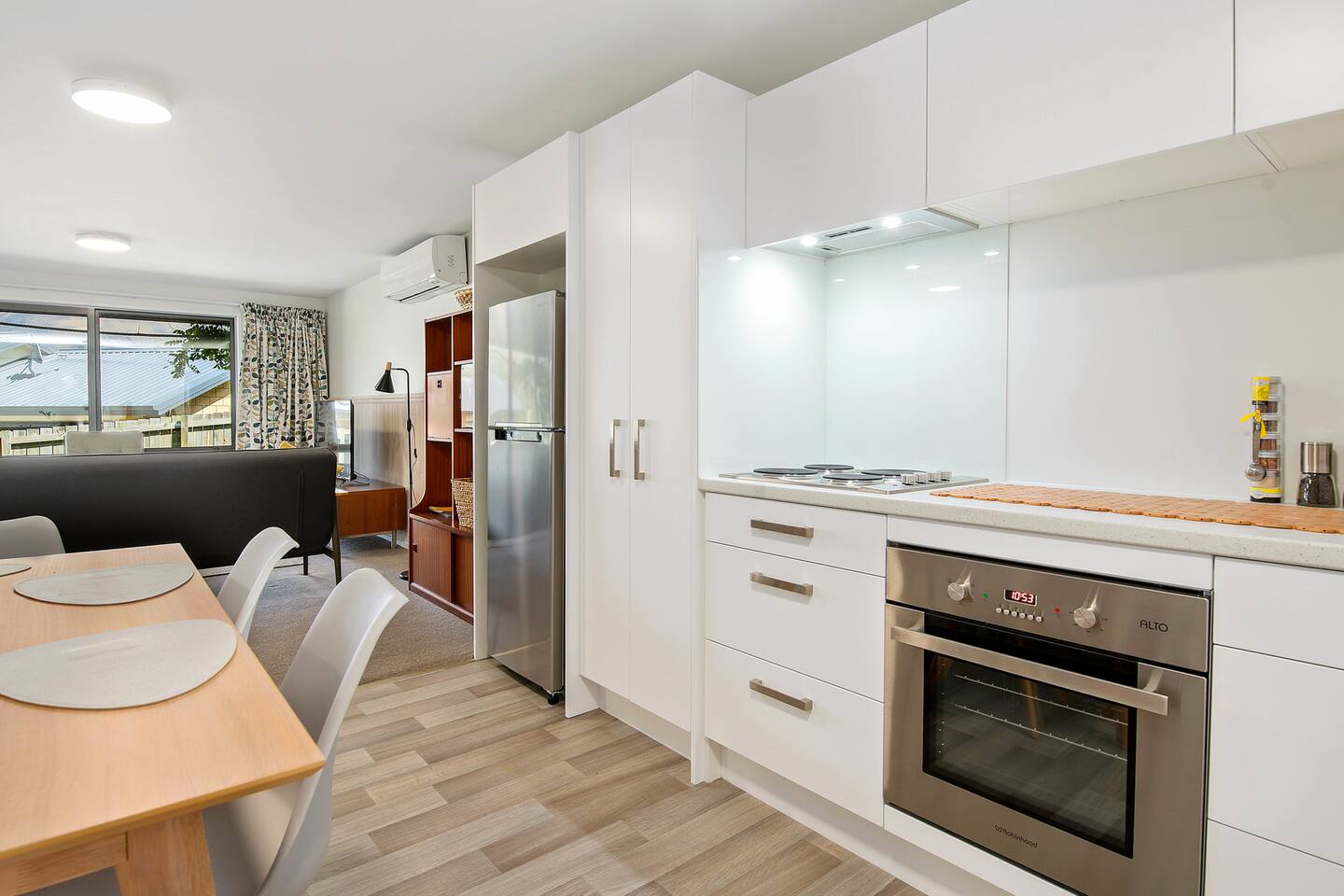 The roomy 63 m2 apartment is furnished with some original mid-century furniture pieces and the spacious kitchen features a dining suite for 6 people. The fantastic "Tiltaway" queen bed folds away in seconds with the bedding still in place! The NOOD sofa is easily converted into a double bed. Enjoy your own private terrace with outdoor seating for 4 people and a BBQ. This could easily be the biggest studio apartment you ever stayed in.